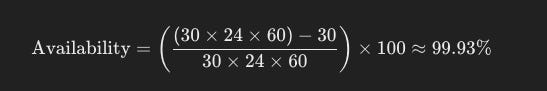 Example Calculation: If Dhiki Labs was down for 30 minutes in a month, the availability would be: